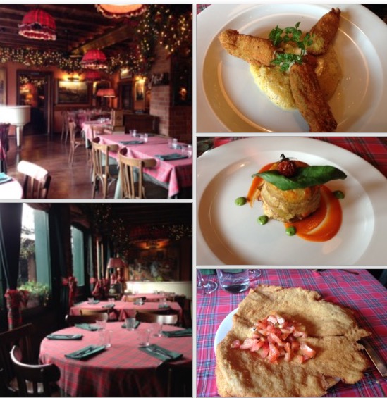 Fra le specialità: risotto giallo classico o con l’osso buco, la cotoletta a orecchia d’elefante (800gr) inusuale…vale la deviazione, la melanzana alla parmigiana “leggera”, fiori di zucca fritti ripieni di mozzarella su letto di polentina e da provare il coreografico “sferamisù”…evoluzione del grande classico dessert italiano.