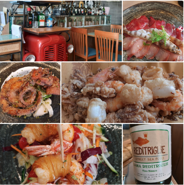 Questo grazioso e intimo localino, con servizio aggiuntivo nel raccolto e gradevole Dehor esterno, è in realtà una felicissima scoperta che solamente durante la degustazione, si scopre essere una nuova versione di street food marinaro, originata dalle esperte mani di uno Chef vero. Già stellato in Germania e Head Chef in tempi passati di grandi Hotel, o perfino Personal Chef di personaggi di caratura mondiale.